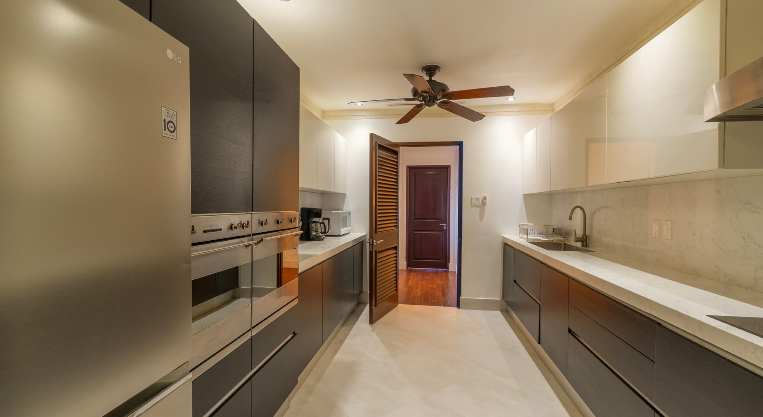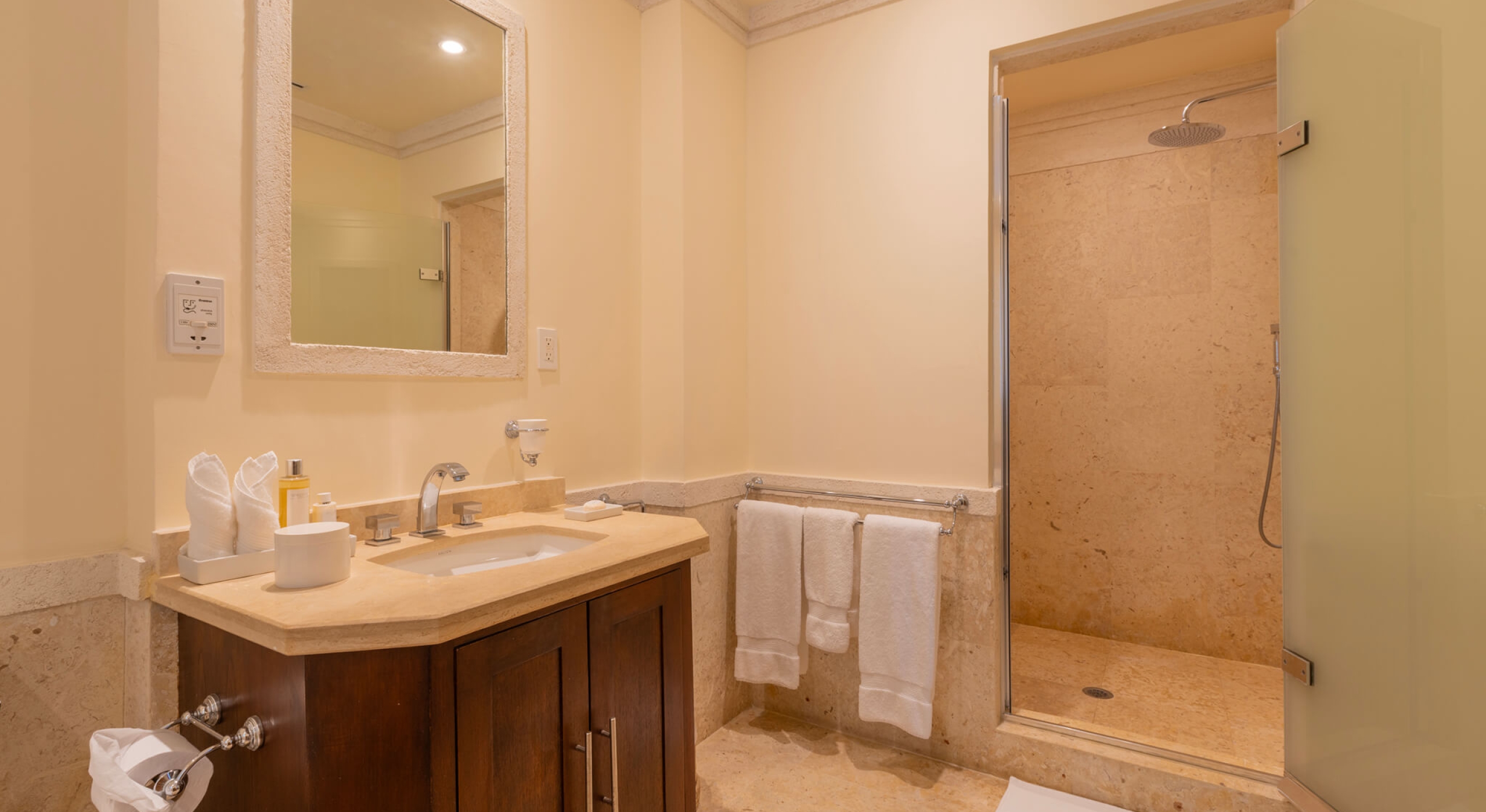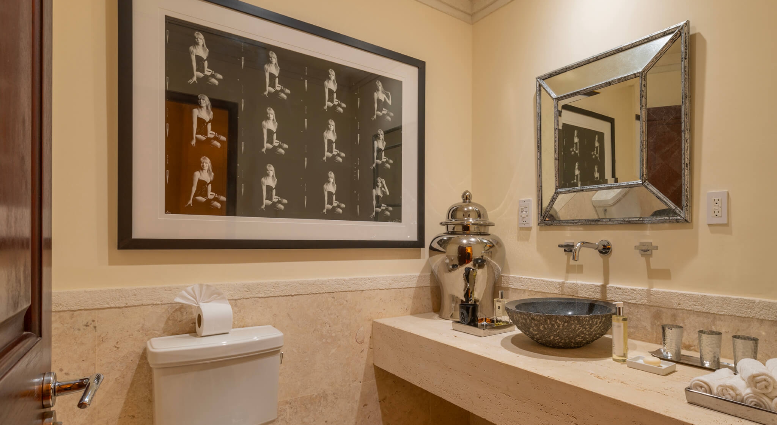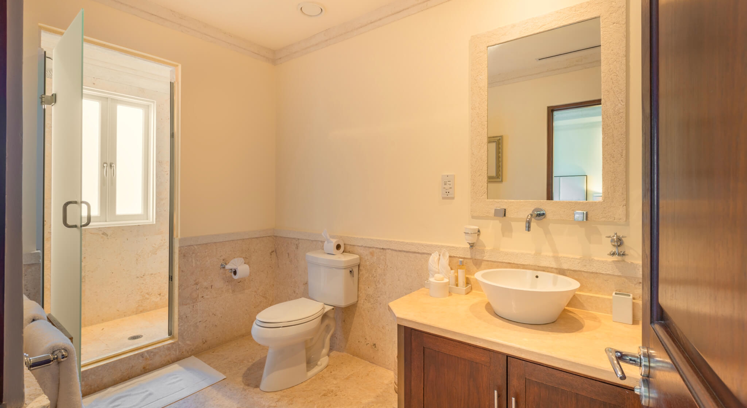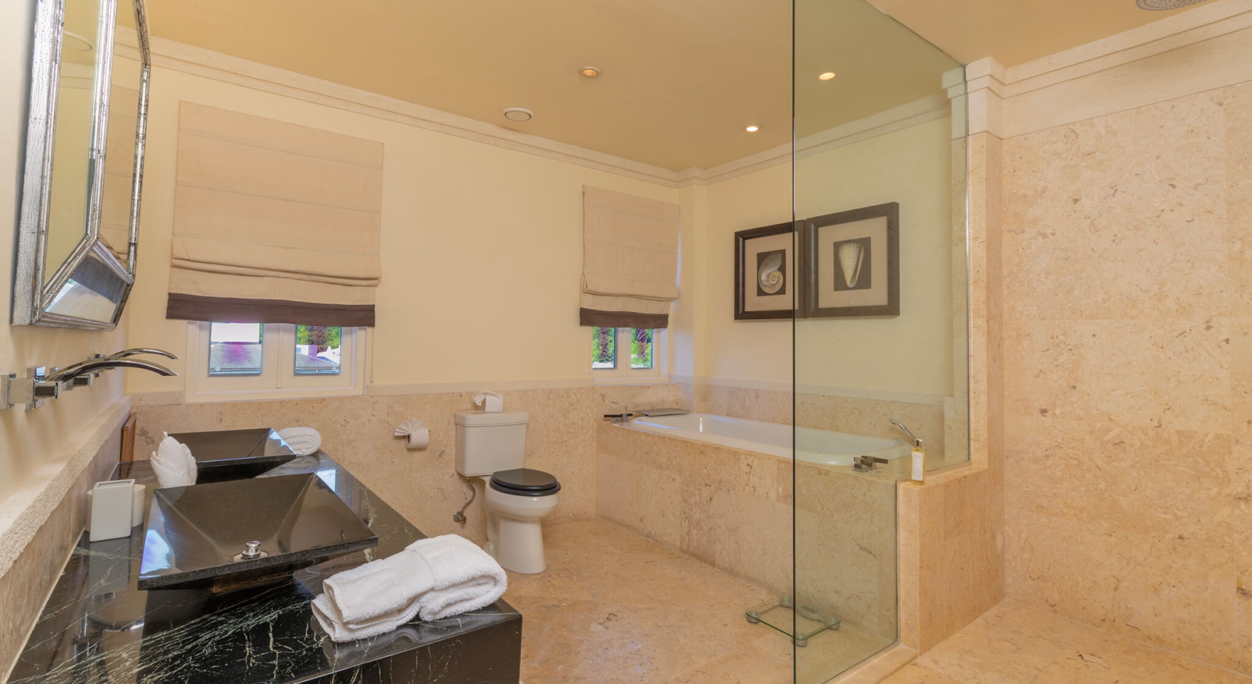 With four generously sized air-conditioned bedrooms, accommodating up to eight guests, your comfort is paramount. Three bedrooms feature king-size beds, while the fourth offers the flexibility of two twin beds or a King. Each bedroom boasts a private en-suite bathroom with a shower, and three even include a luxurious bathtub. There is also a well-equipped media room with a pull-out sofa just off the living area that can be accommodated for an additional charge.